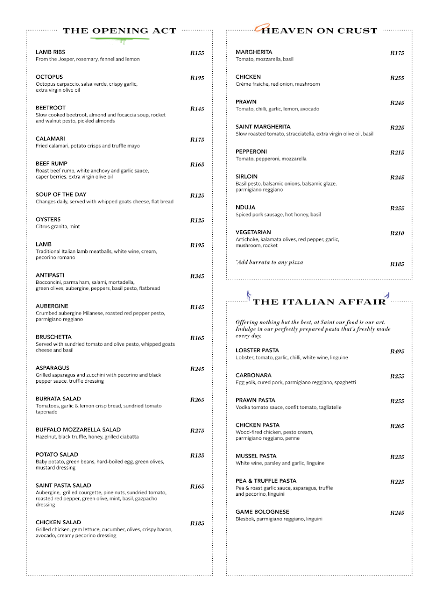 Welcome to Saint Restaurant, located at The Marc Corner in Sandton, South Africa. This vibrant venue is more than just a dining experience; it’s an atmosphere of energy and elegance, leaving guests awestruck by its stunning design. Patrons rave about the attentive service, highlighting the warmth and expertise of the staff. Reviewers like Knowledge Hadebe emphasize that every dish served is a revelation, making each bite memorable.